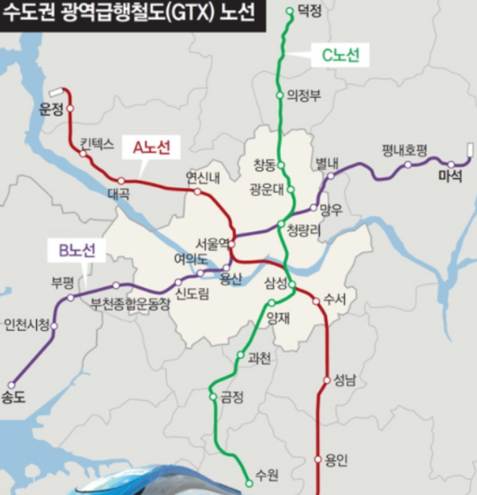 gtx는 a,b,c가 어느정도 확정되었죠. * 아래 a,b,c,d 노선도 모두 첨부해놨습니다. 그리고 gtx d노선도는 아직 확정은 안된것으로 알려져있습니다. 우선 아래 gtx d노선에 해당되는 노선돌르 참고하시