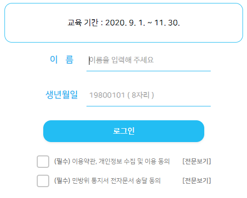 2020 스마트 민방위 교육 기간은 2020.9.1.~11.30.으로 되어있네요.