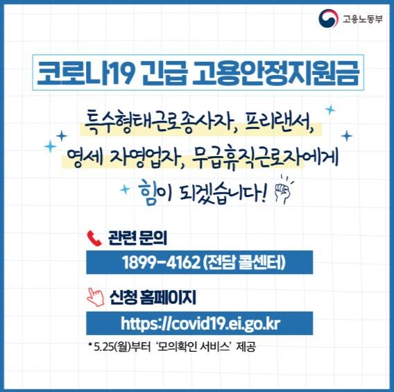 긴급 고용안정지원금 문의확인 서비스를 5월 25일 월요일부터 제공하고 있으니 이점 참고하시기 바랍니다.