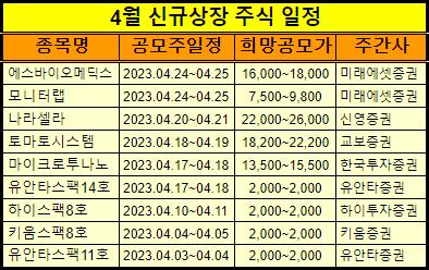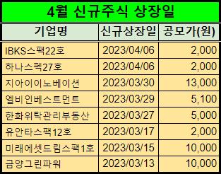 이렇게 2023년 4월에 신규 상장예정인 주식들을 알아봤는데요.