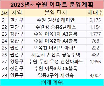 아래 2023년 서울, 경기도, 인천 분양예정 아파트들도 표로 정리해놨습니다.