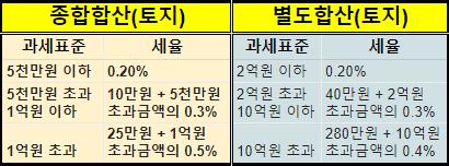 토지의 경우에는 종합합산과 별도합산으로 나뉩니다.