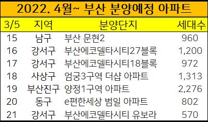 2022년 4월이후 부산에서 분양예정인 아파트들을 정리했습니다.
