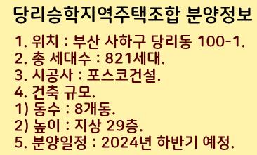이렇게 부산 당리승학지역주택조합 분양정보를 정리했는데요.