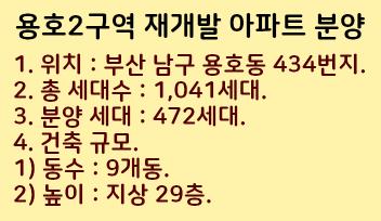 이렇게 용호2구역 재개발 아파트 분양정보를 정리했습니다.