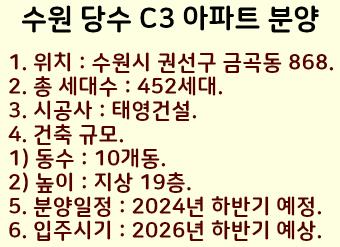 이렇게 수원 당수지구 C3블록 아파트 분양정보를 정리했습니다.