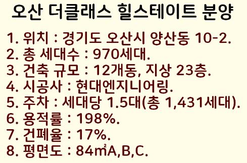 오산 더클래스 힐스테이트 아파트 분야계획을 정리했습니다.