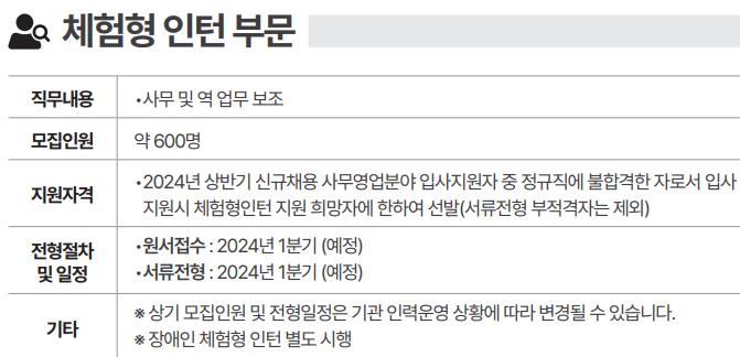 또한 코레일은 청년 인턴을 2024년 하반기에만 600명을 채용합니다.