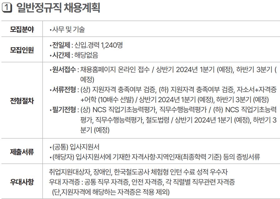일반정규직의 경우에는 2024년 한해에만 1,240명을 채용예정입니다.