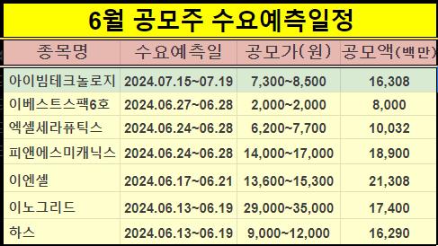 6. 공모주 청약일정 : 2024년 6월11일~6월12일.