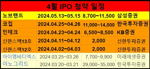 4월 IPO 일정을 표로 정리했습니다.