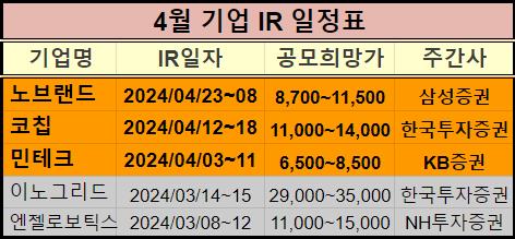이렇게 2024년 4월 공모주 청약일정을 표로 정리해서 알려드렸는데요.