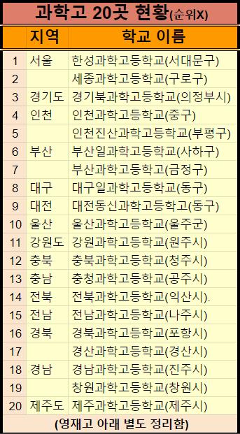 1. 과학고(공립 20곳) : 거주지역 선발.