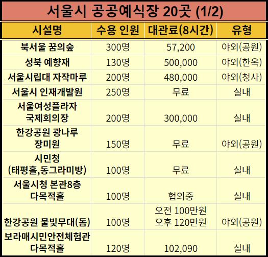 서울시 공공예식장 20곳