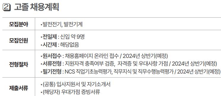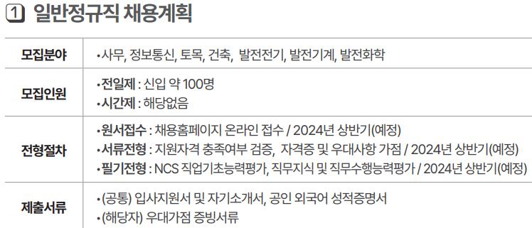 1. 모집분야 : 사무직, 정보통신, 토목직, 건축, 발전전기, 기계, 화학직.