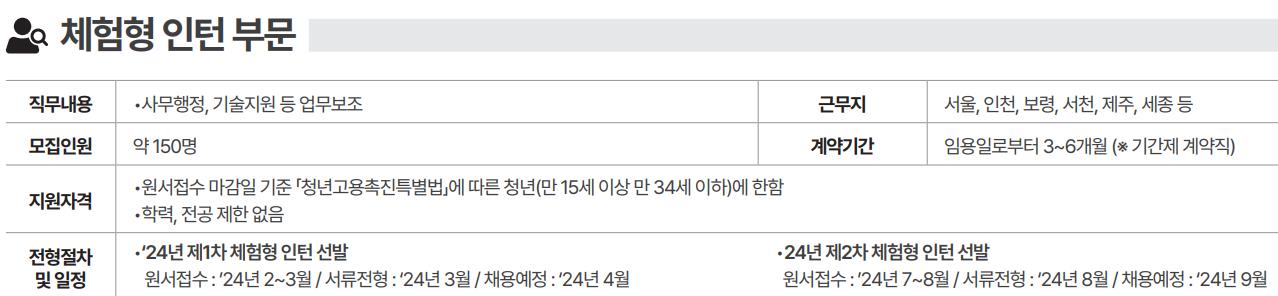 2024년 한국중부발전에서 청년 인턴을 150명을 모집합니다.
