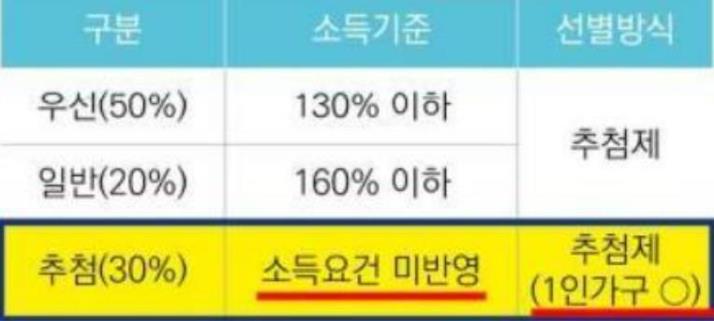 3. 추첨으로 선정하지만 70%는 저소득층 우선 공급합니다.