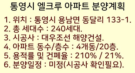 통영시 용남 동달리 엘크루 아파트 분양계획을 정리했습니다.