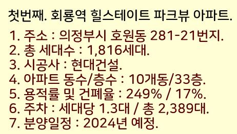 첫번째. 회룡역 힐스테이트 파크뷰 아파트.