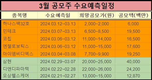4. 공모주 청약일정 : 2024년 3월 6일~3월 7일.