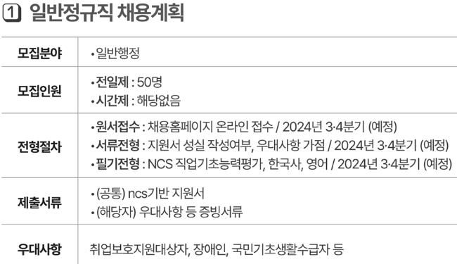 1. 정규직 채용 : 50명(연봉 3,242만원).