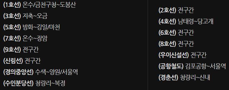 기후동행카드로 이용가능한 지하철역은 다음과 같습니다.