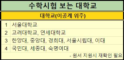 아래 수학시험으로 편입을 할수있는 인서울 대학을 참고하세요.