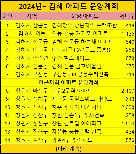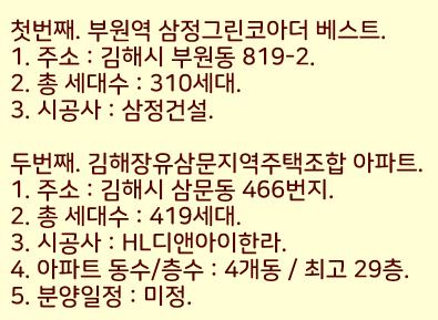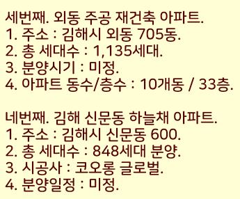 2024년 이후 김해시에서 분양하는 아파트들을 알려드렸습니다.