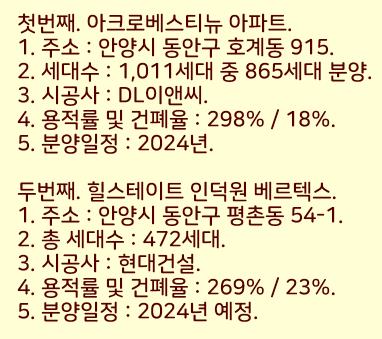 이렇게 2024년 안양시 아파트 분양계획을 표로 정리해서 알려드렸는데요.