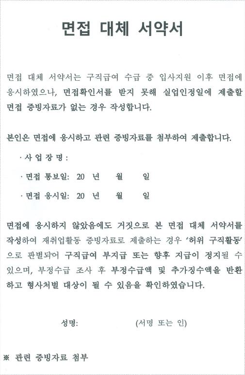 면접확인서 대체서약서 양식을 PDF파일로 올려드립니다.