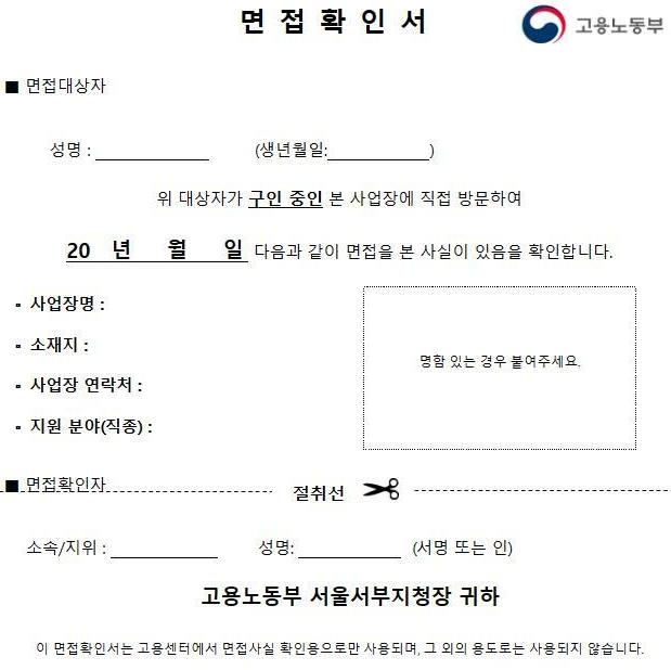 아래 면접확인서 양식도 같이 올려놨습니다.