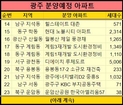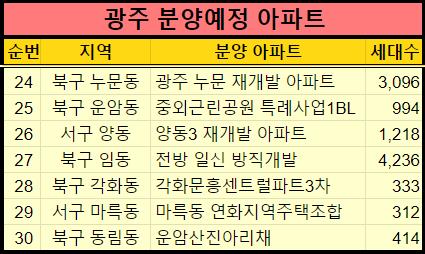 또한 아직 청약일정이 미정이나 광주에 분양 준비중인 아파트들도 같이 표로 만들었습니다.