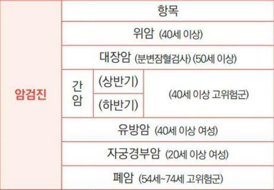 세번째. 간암 검사는 상반기/하반기 나눠서 40세 이상 고위험군 대상으로 검진합니다.