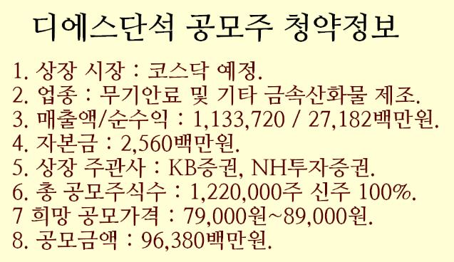 디에스단석 공모주 청약일정, 공모가격, 상장일, 재무정보 등을 정리했습니다.