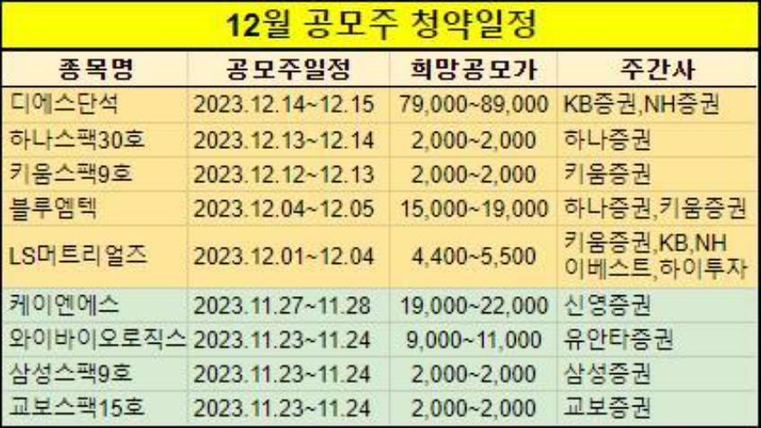 2. 공모주 청약일정 : 2023. 12.14~12.15.