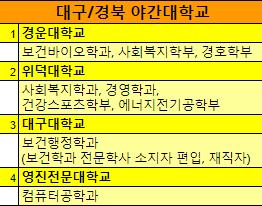대구와 대전, 광주에 야간대학과 야간학부를 같이 알려드렸습니다.