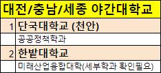 대전과 대구에 있는 야간대학교를 정리했습니다.