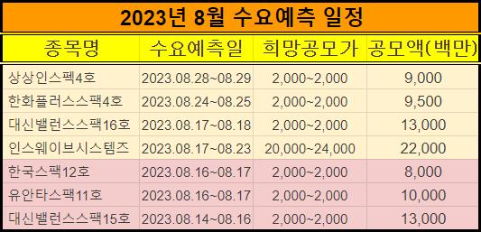 8월 신규 상장 주식 일정표와 수요예측일정도 같이 확인하세요.