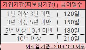 이렇게 가입기간별로 실업급여 지급일수가 다르니 첨부한 표를 참고하세요.