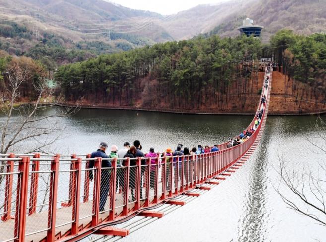 흔들리는 다리 위에서 밑을 바라보면 정말 짜릿한데요.