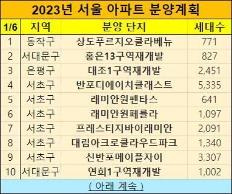 아래 2023년 서울 아파트 분양계획도 같이 참고하시기 바랍니다.