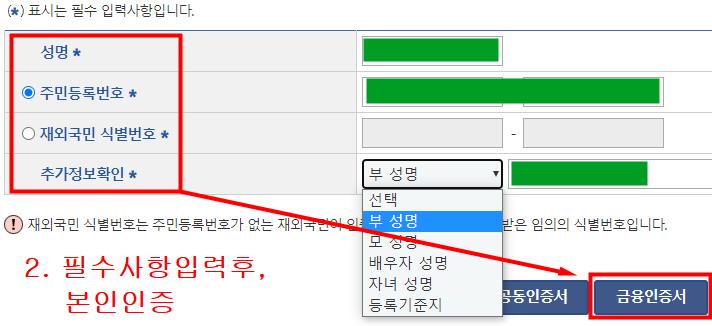 첫번째. 우선 이름과 주민번호를 입력합니다.