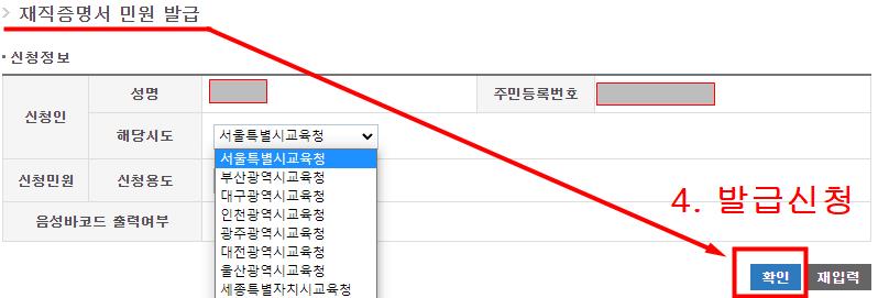 이제 확인만 누르시면 교사분들의 재직증명서를 인터넷으로 발급할수있습니다.