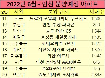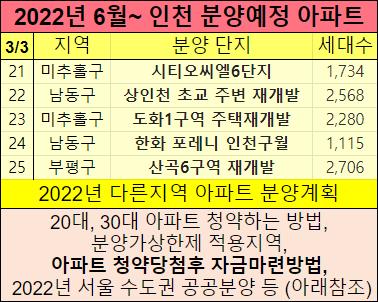 2022년 6월이후 인천 분양예정아파트를 표초 정리했습니다.