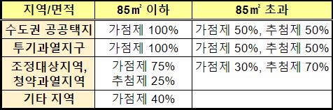 85제곱미터이상의 서울 아파트 청약에서는 추첨제 50%로 청약 1순위 자격만 충족하면 추첨으로 당첨될수있습니다.