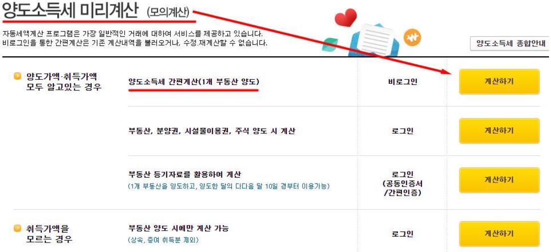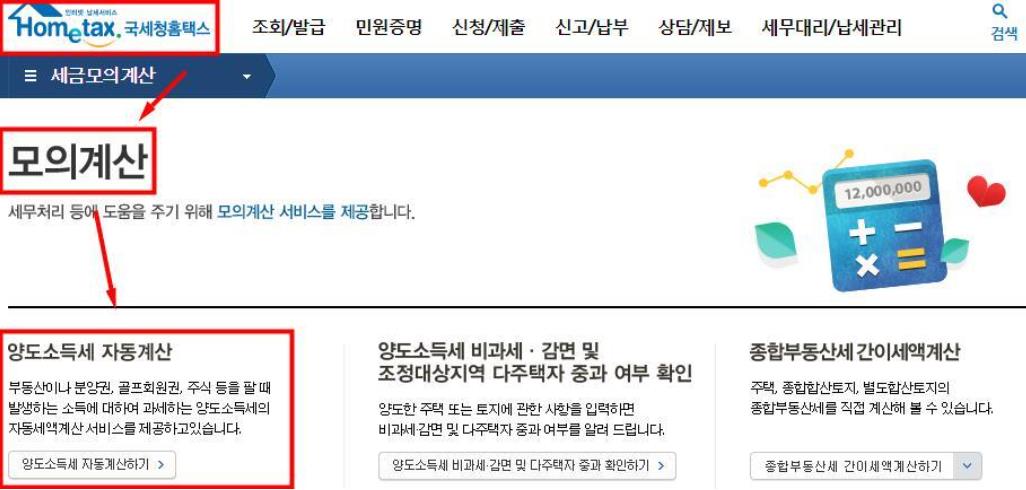 국세청 양도소득세 모의계산 홈페이지를 아래 남겨놨습니다.