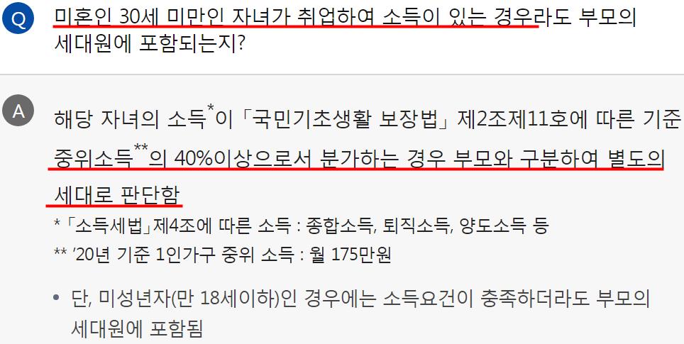 중요한건 자녀가 소득이 있거나 만30세 이상이어야한다는 점을 꼭 확인하세요.
