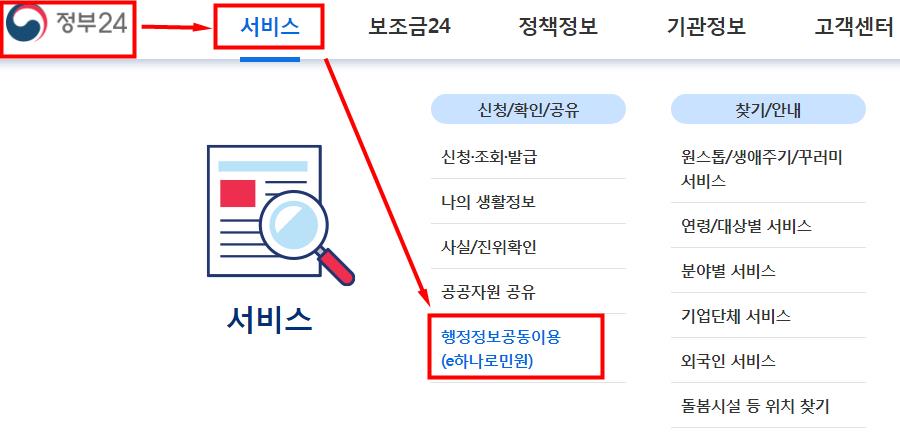 두번째. '행정정보공동이용' 하나로민원센터에 들어갑니다.