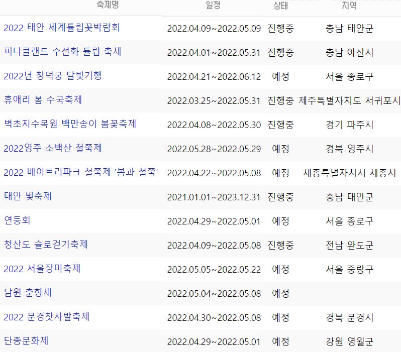 꽃 축제 가볼만한곳 50개곳정도를 정리했습니다.