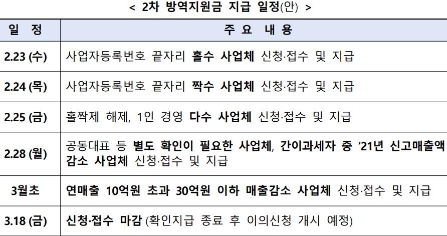 이번 소상공인 방역지원금은 신청 대상별로 접수일정이 다릅니다.